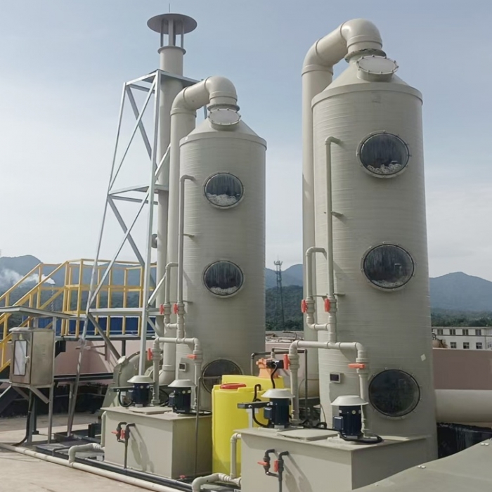 A PPH spray tower (Polypropylene Homopolymer spray tower) is a high-performance wet scrubber made of PPH, a modified homopolymer polypropylene with superior heat and corrosion resistance. It is widely used for acid/alkali exhaust gas purification, dust removal, and mist elimination in chemical, plating, electronics, and pharmaceutical industries.