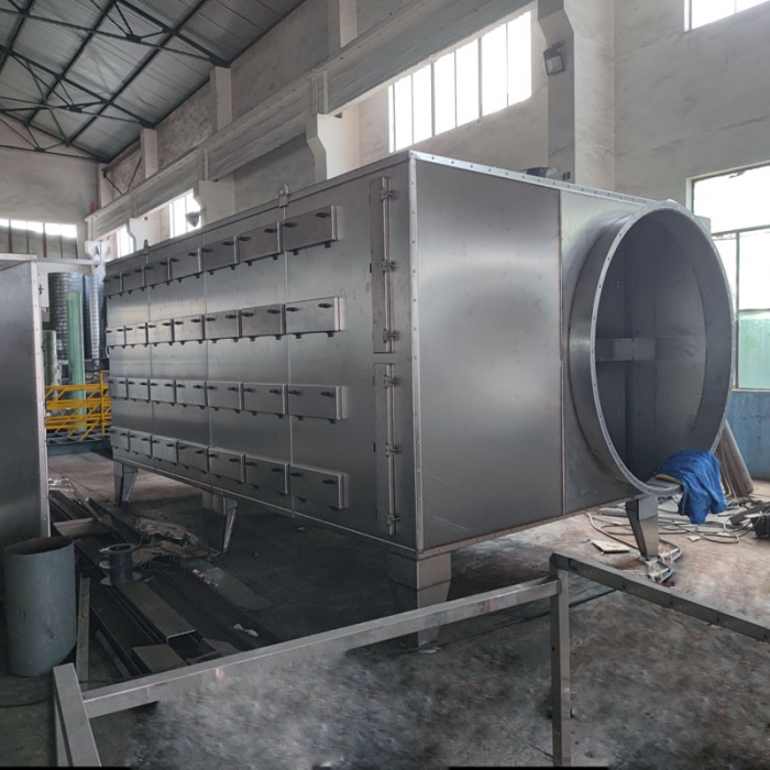The activated carbon adsorption box is a type of dry exhaust gas treatment equipment. It consists of a box and adsorption units filled inside the box. According to the number of adsorption units and air volume, it is divided into various specifications.